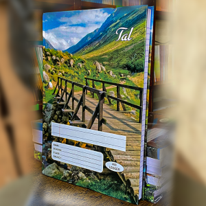 Organisez vos écrits avec style grâce au cahier TAL 400 feuilles au format Ledger. Son design de couverture naturelle et apaisante, illustrant un magnifique paysage de montagne avec un pont en bois, inspire calme et concentration.