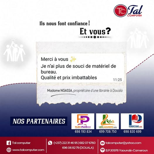 Il nous font confiance !Parfaitjuillet 1, 2025Chez Tal Computer & partenaires, la satisfaction de nos clients est notre plus grande fierté ! Du matériel de bureau ... En savoir plus